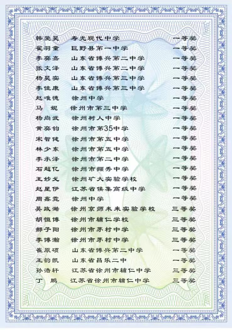 2021年全国青少年科技创新能力测评获奖名单